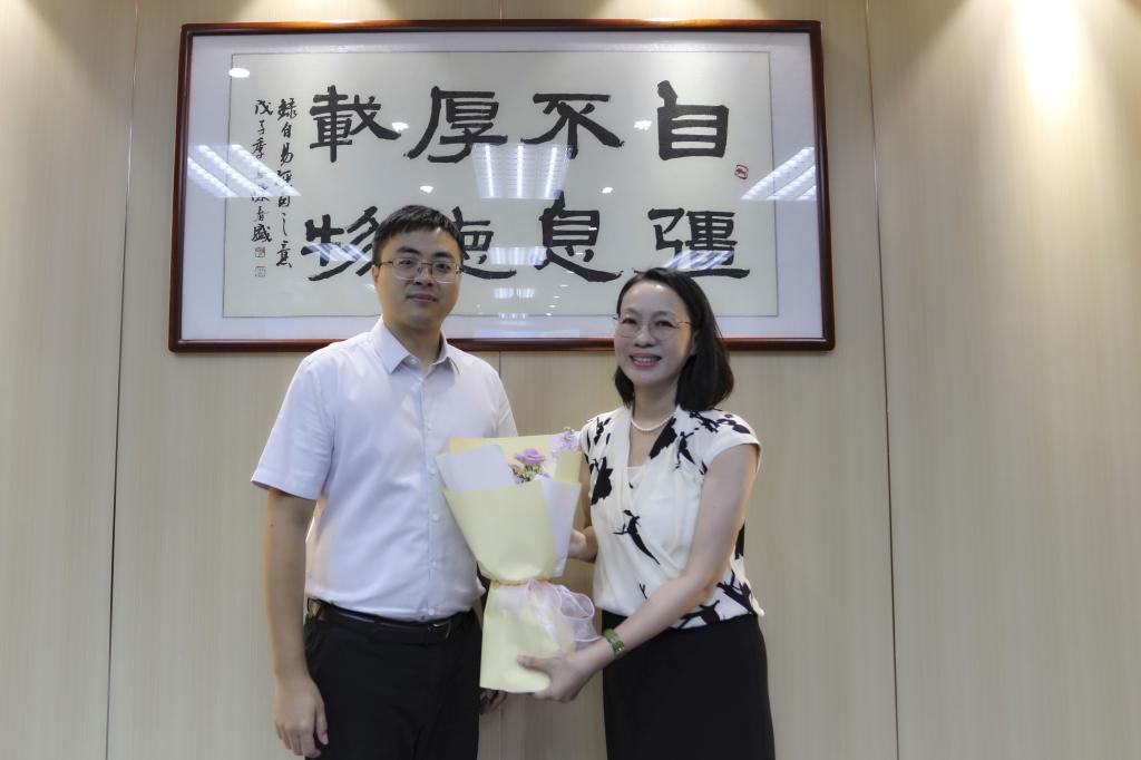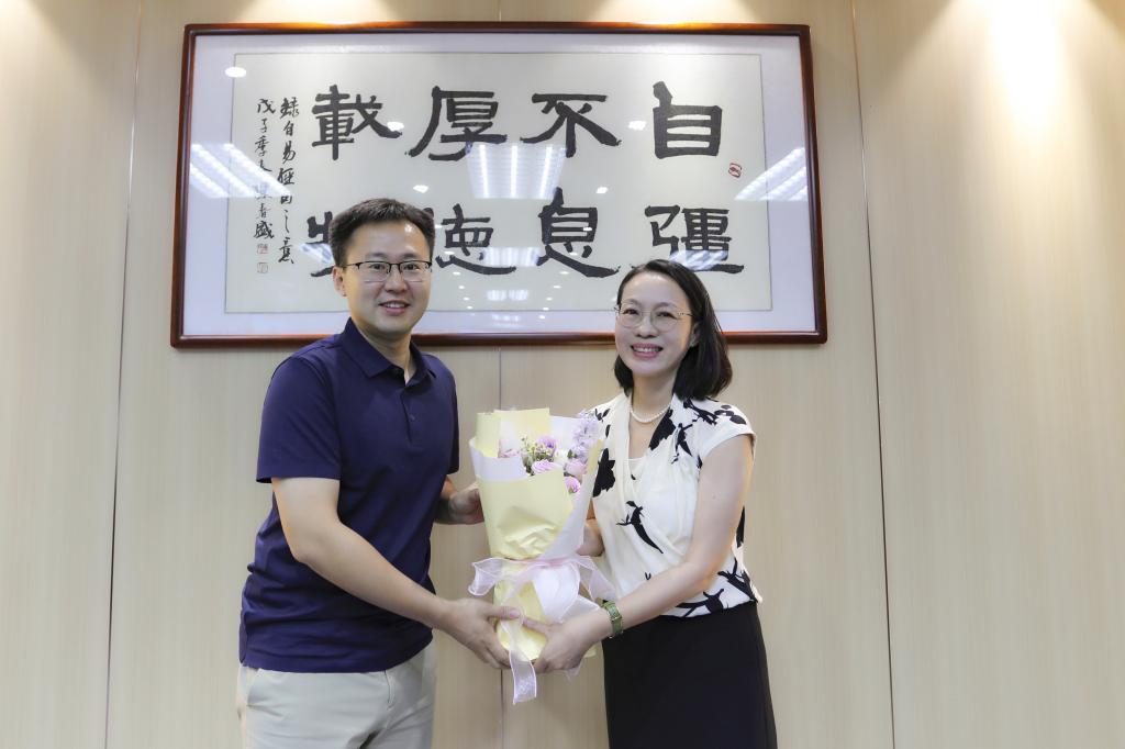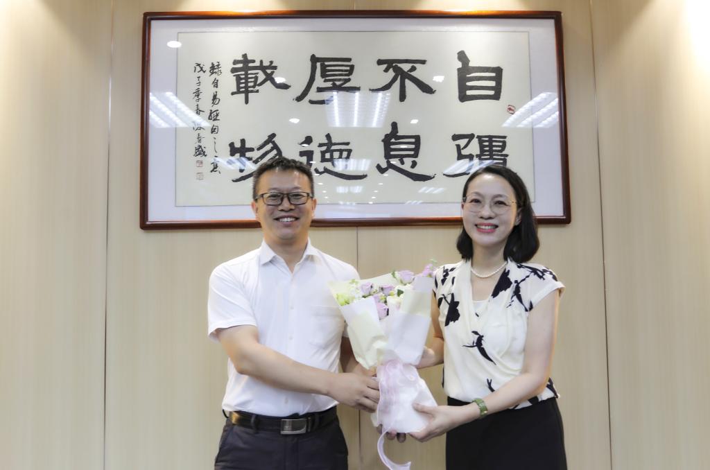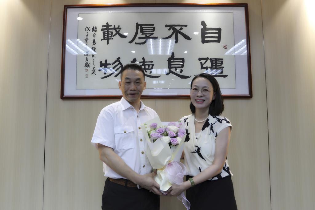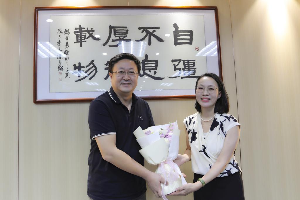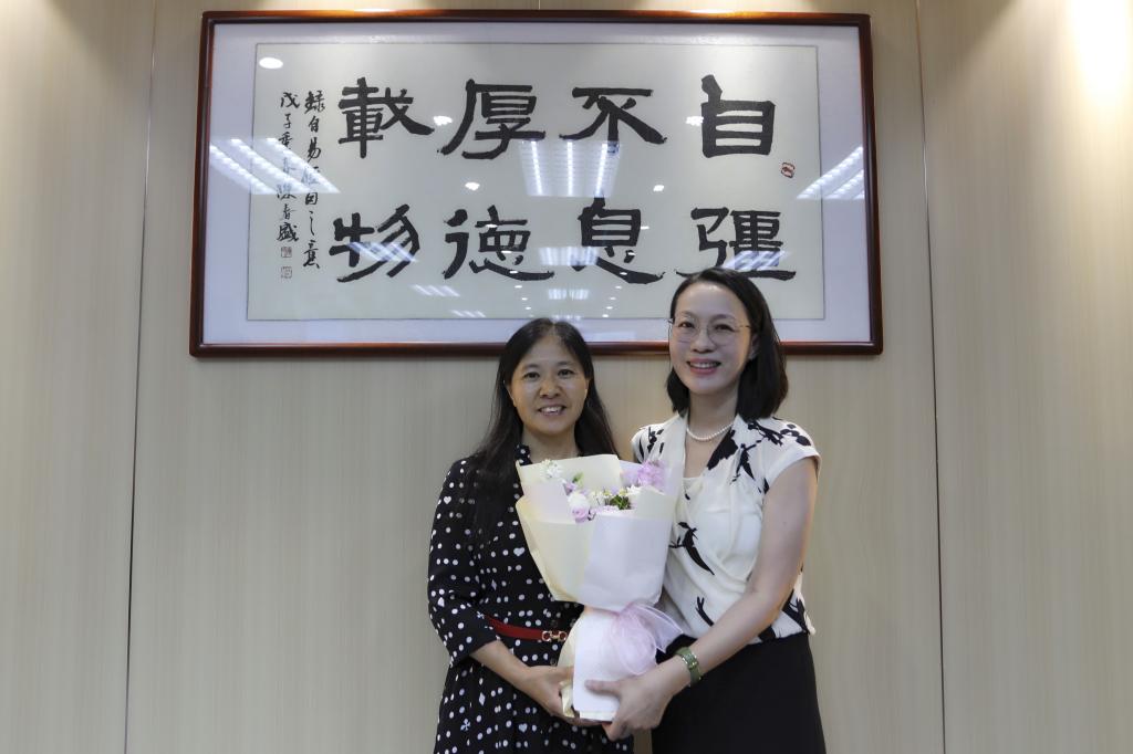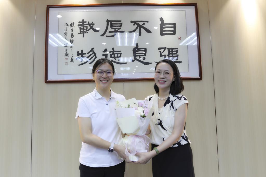 座谈会后,陶韶菁向与会教师代表赠送鲜花表达节日的祝贺。全体参会人员合影留念。