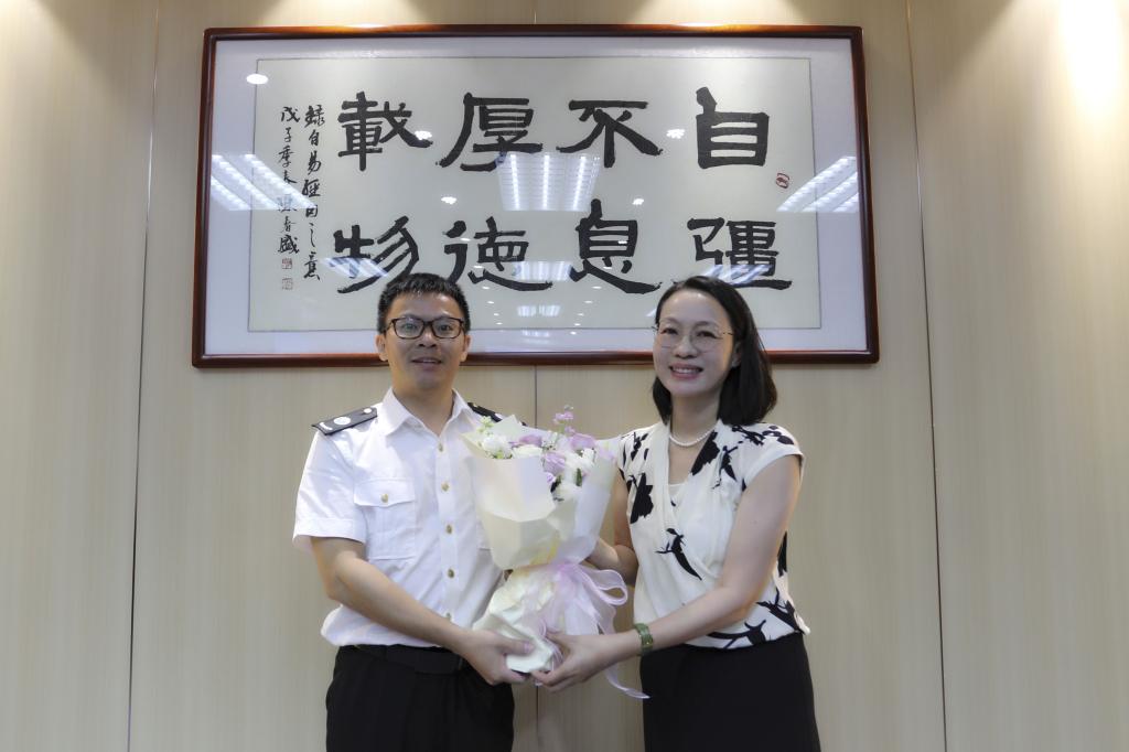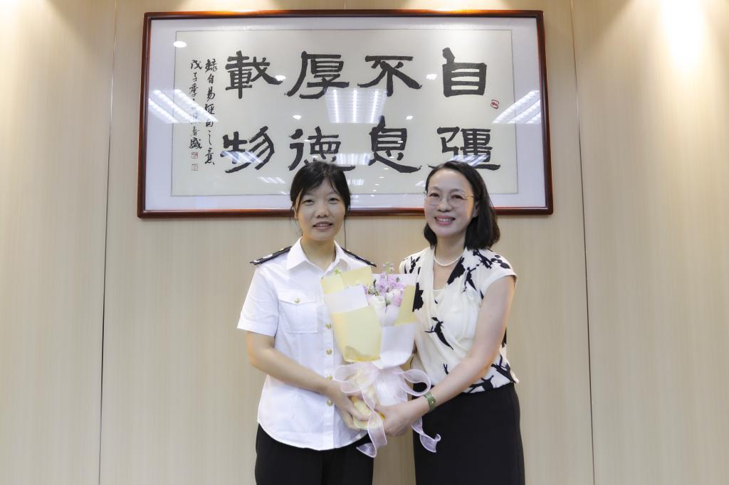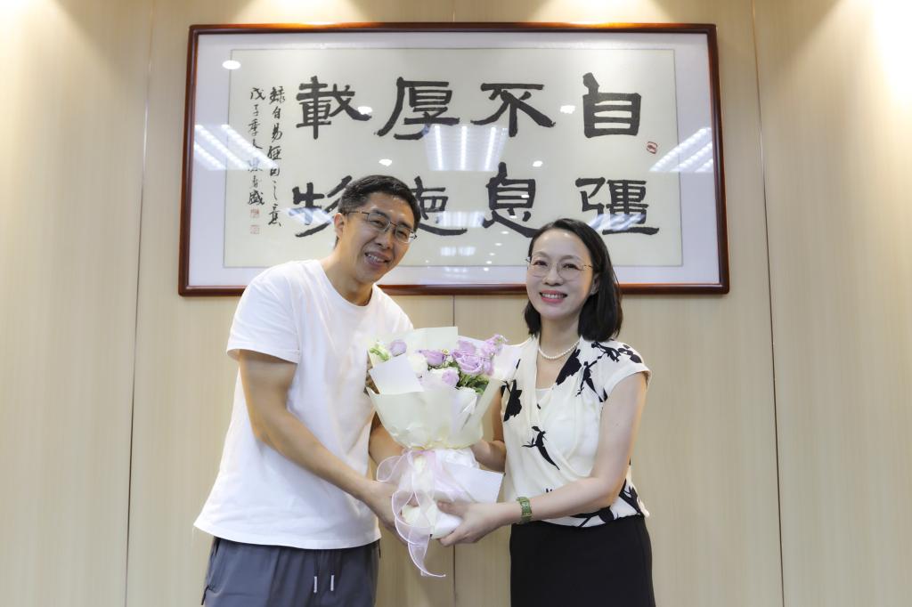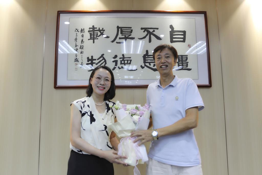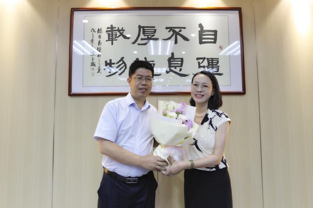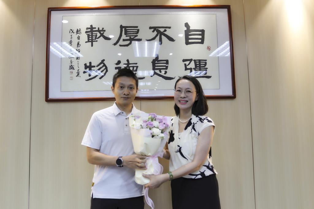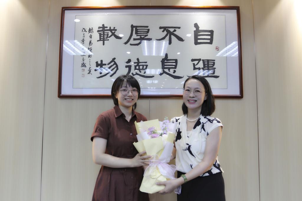 座谈会后,陶韶菁向与会教师代表赠送鲜花表达节日的祝贺。全体参会人员合影留念。
